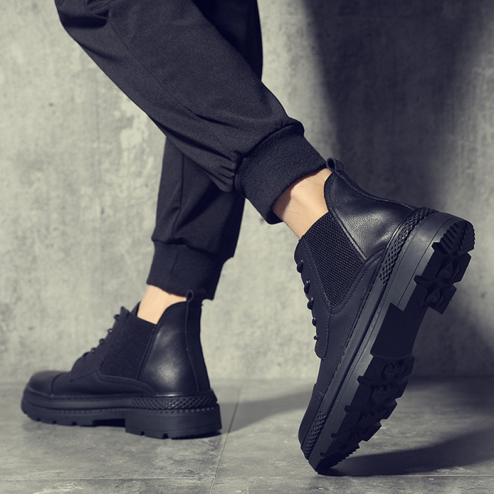 Men's Leather Martin Boots Winter Casual British Tooling Shoes