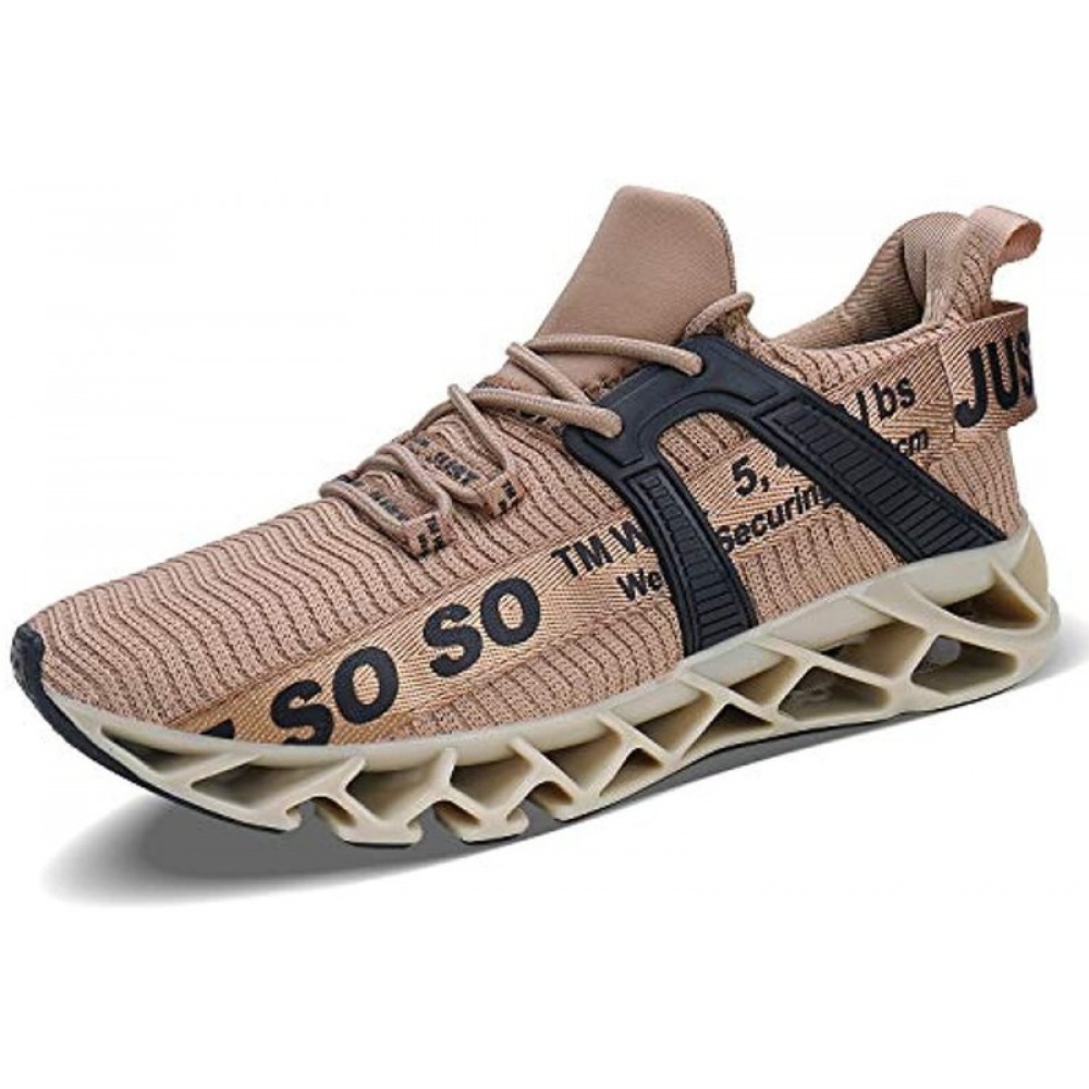 Mens Runing Shoes Walking Non Slip Blade Type Sneakers Gold