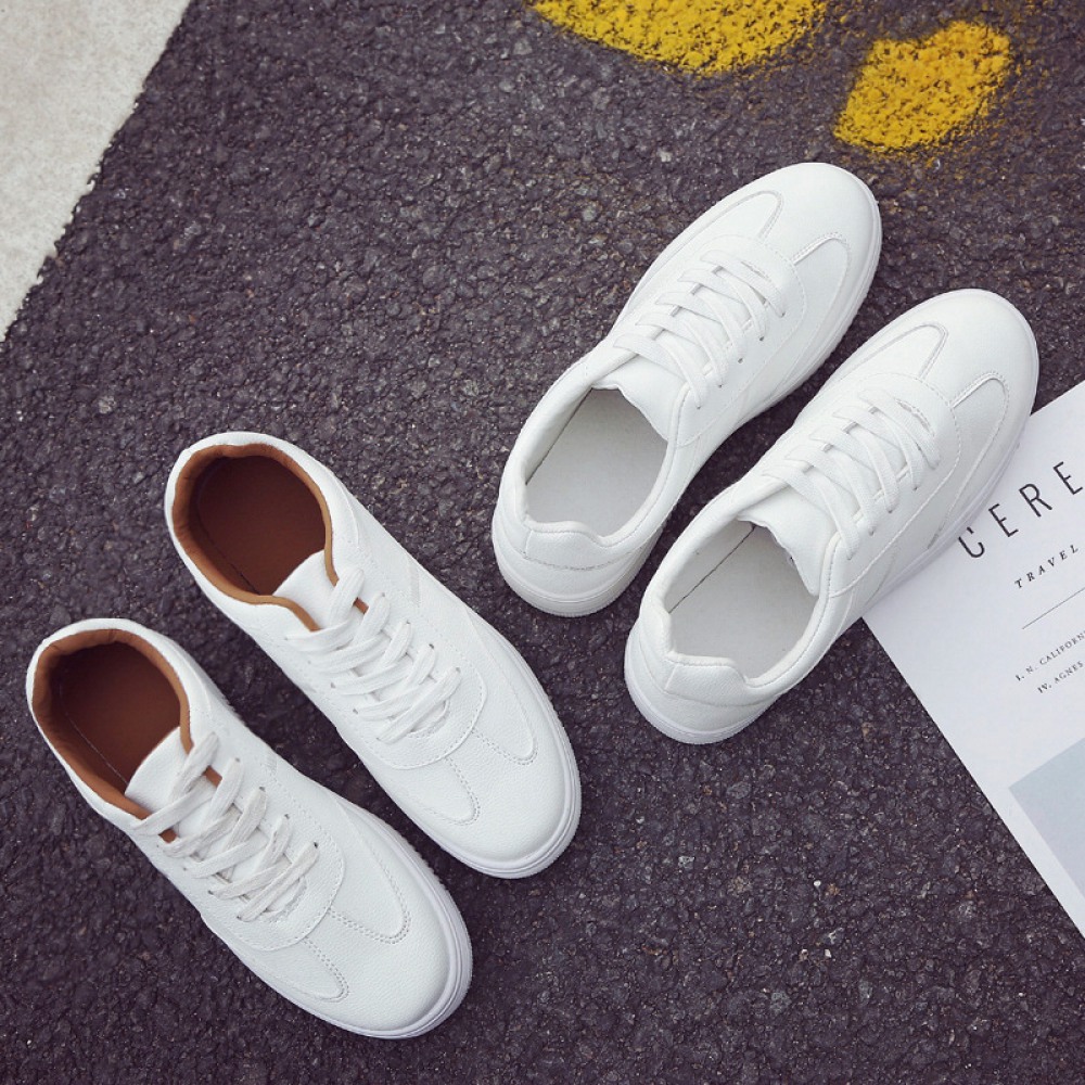 Spring White Running Board Shoes Lace-Up Flat-Bottom Breathable Casual Shoes