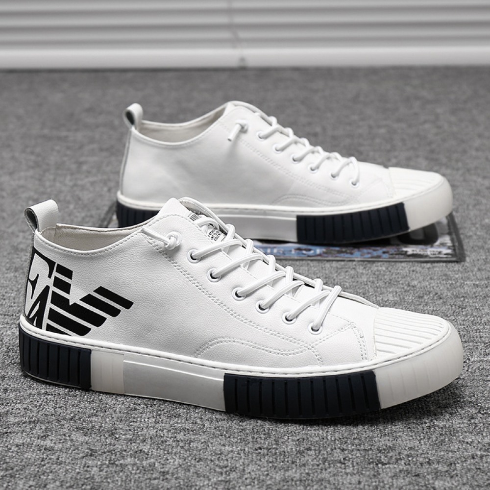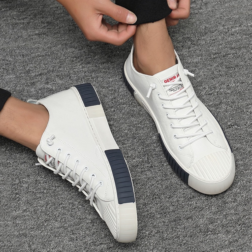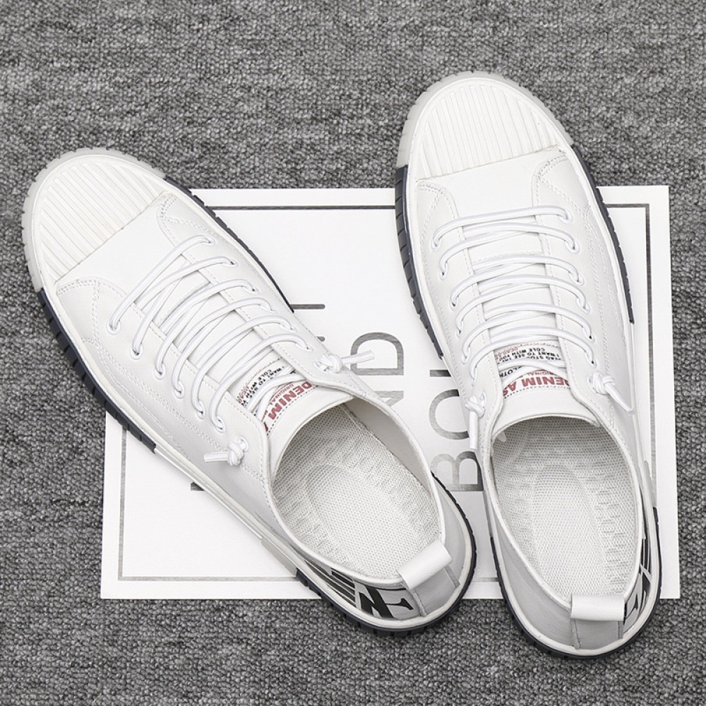 Summer Men's Board Shoes Soft Leather White Trendy Shell-Toe Daily Casual Shoes