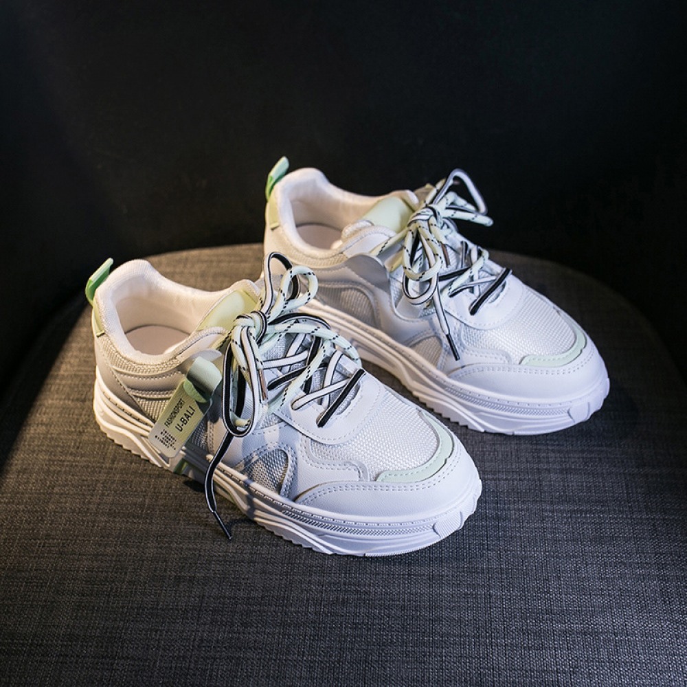 Spring White Running Board Shoes Lace-Up Flat-Bottom Breathable Casual Shoes