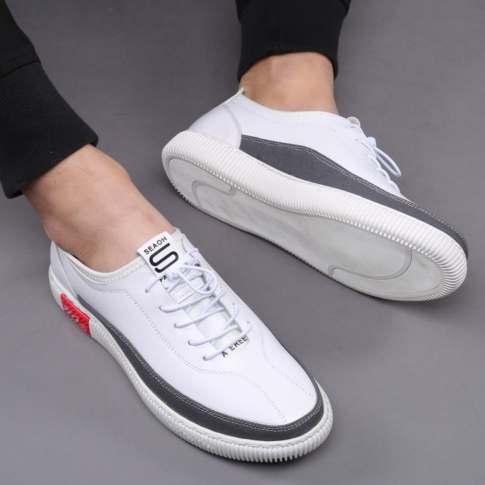 Spring New Men's Casual Sports Shoes TrendLow Top White Leather Shoes