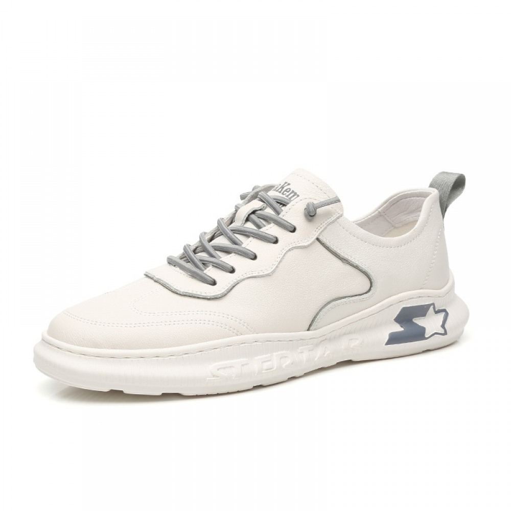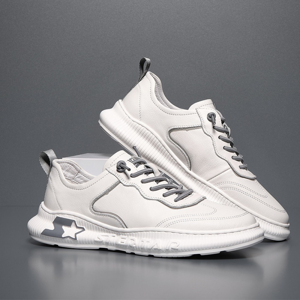 Autumn New Men's Leather Hot Style Casual Low-Cut White Sports Shoes