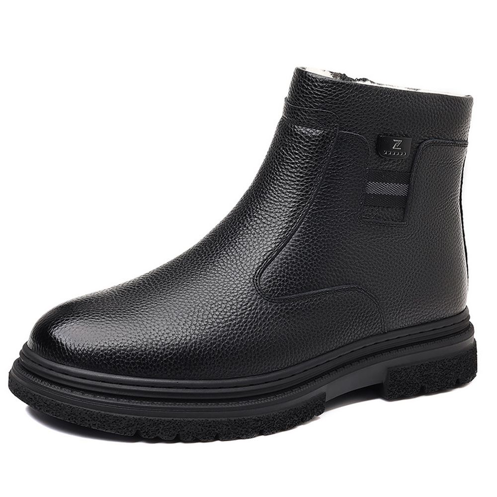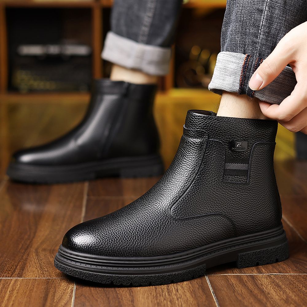 Men's Round Toe British Leather Boots Side Zipper Martin Boots Wear-Resistant Low-Heel Shoes