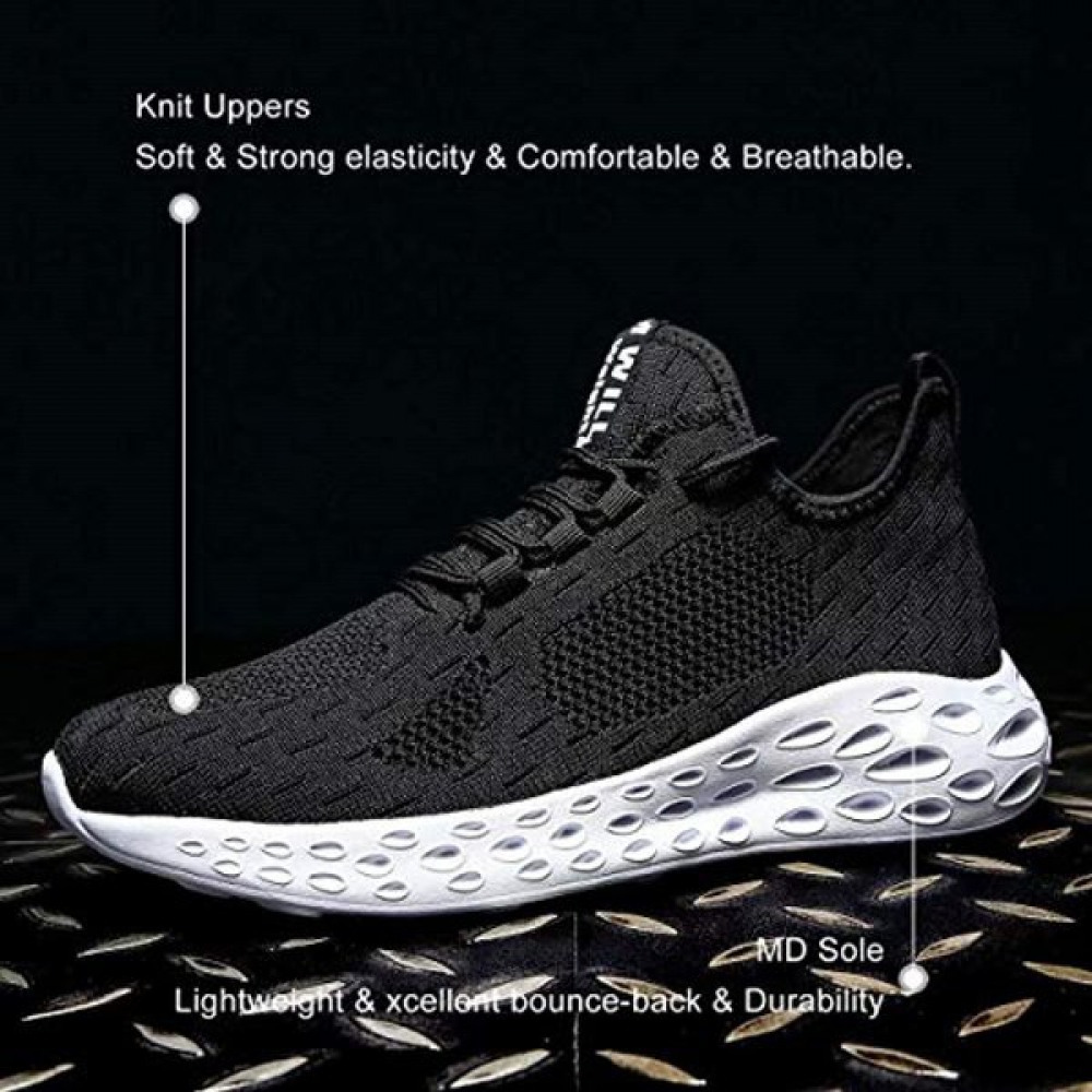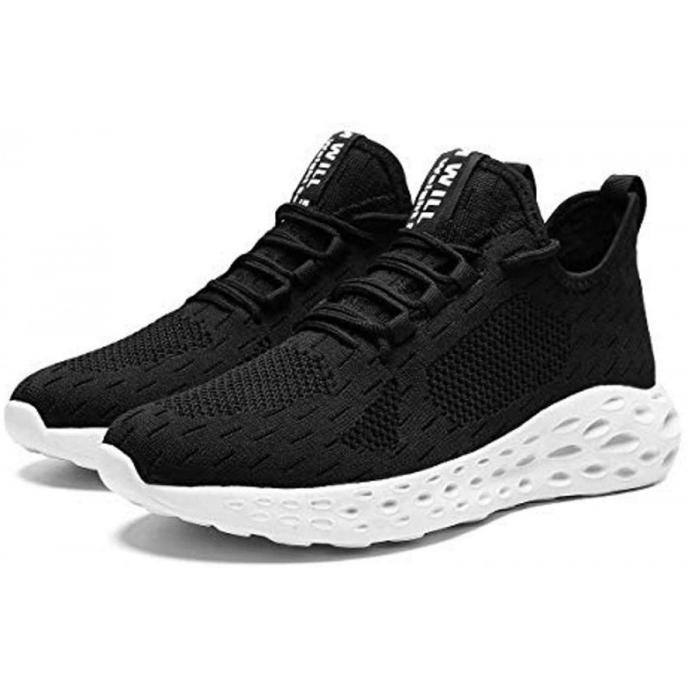 Men's Running Shoes Slip On Walking Shoes Fashion Breathable Sneakers Mesh Soft Sole Casual Athletic Lightweight Black-White