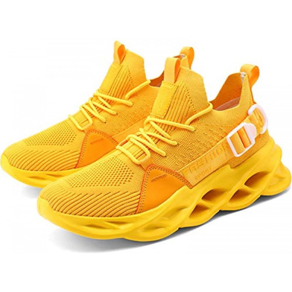 Men's Running Sneakers Walking Gym Athletic Tennis Blade Shoes Fashion Breathable Sneakers Yellow