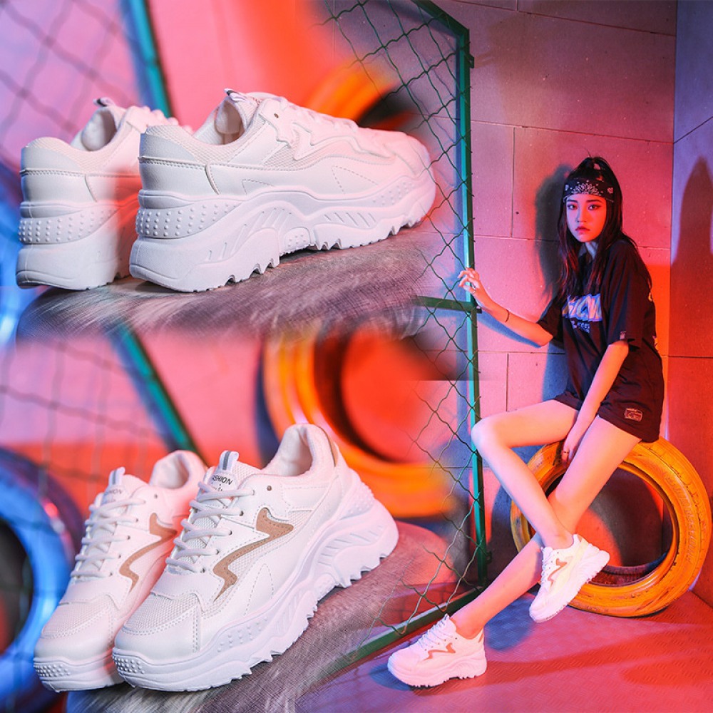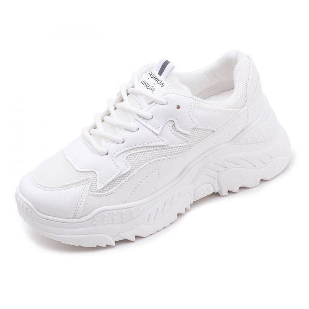 Spring White Running Board Shoes Lace-Up Flat-Bottom Breathable Casual Shoes