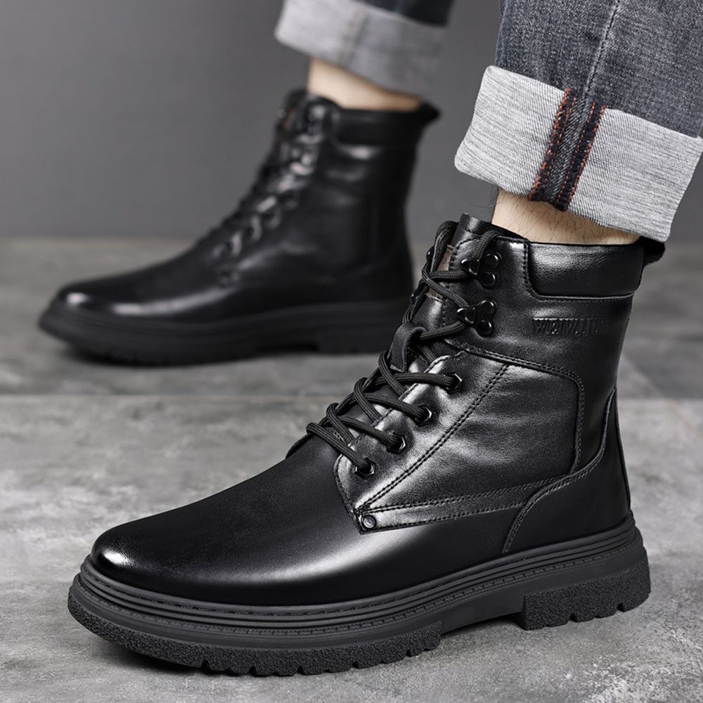 Men's High-Top Trendy Short Boots Tooling Leather Martin Boots